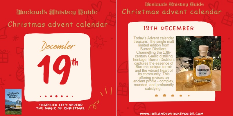Today's Advent calendar standout: The single malt limited edition from Burren Distillers. Delving into the 13th-century Gaelic distilling heritage, Burren Distillers captures the essence of The Burren's unique terroir and pays homage to its vibrant community. This release revises an ancient profile - intricately complex, round, and deeply satisfying.