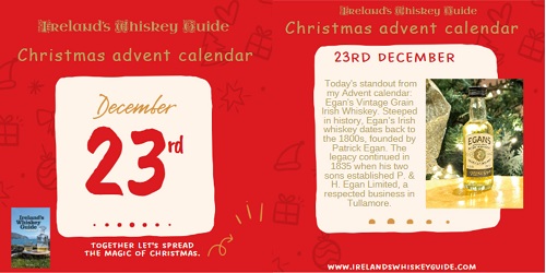 Today's standout from my Advent calendar: Egan's Vintage Grain Irish Whiskey. Steeped in history, Egan’s Irish whiskey dates back to the 1800s, founded by Patrick Egan. The legacy continued in 1835 when his two sons established P. & H. Egan Limited, a respected business in Tullamore.